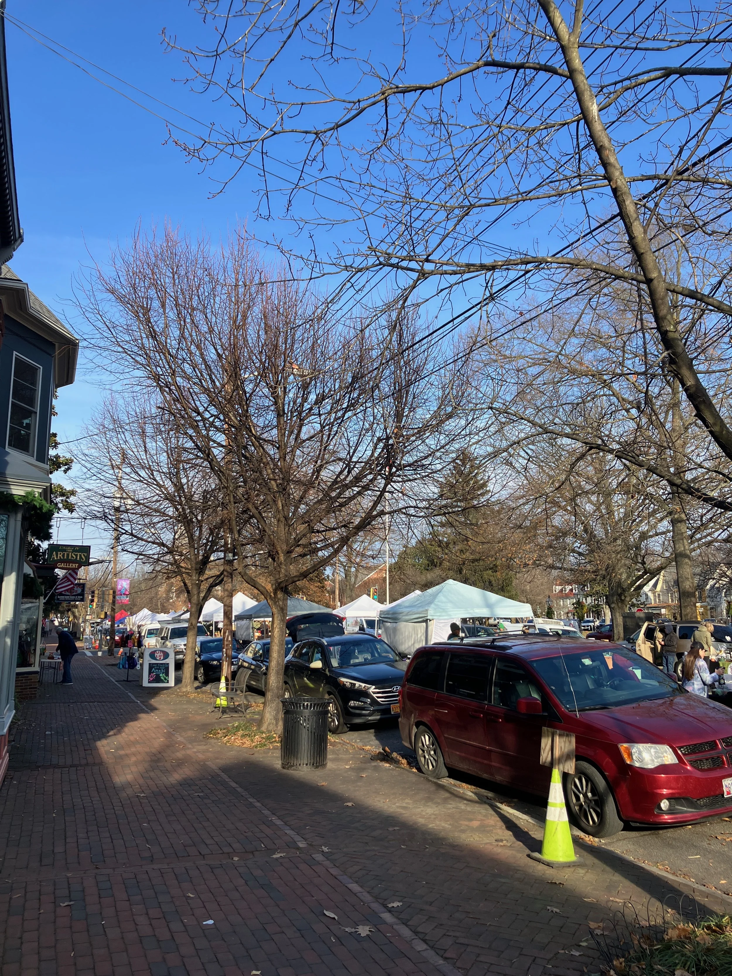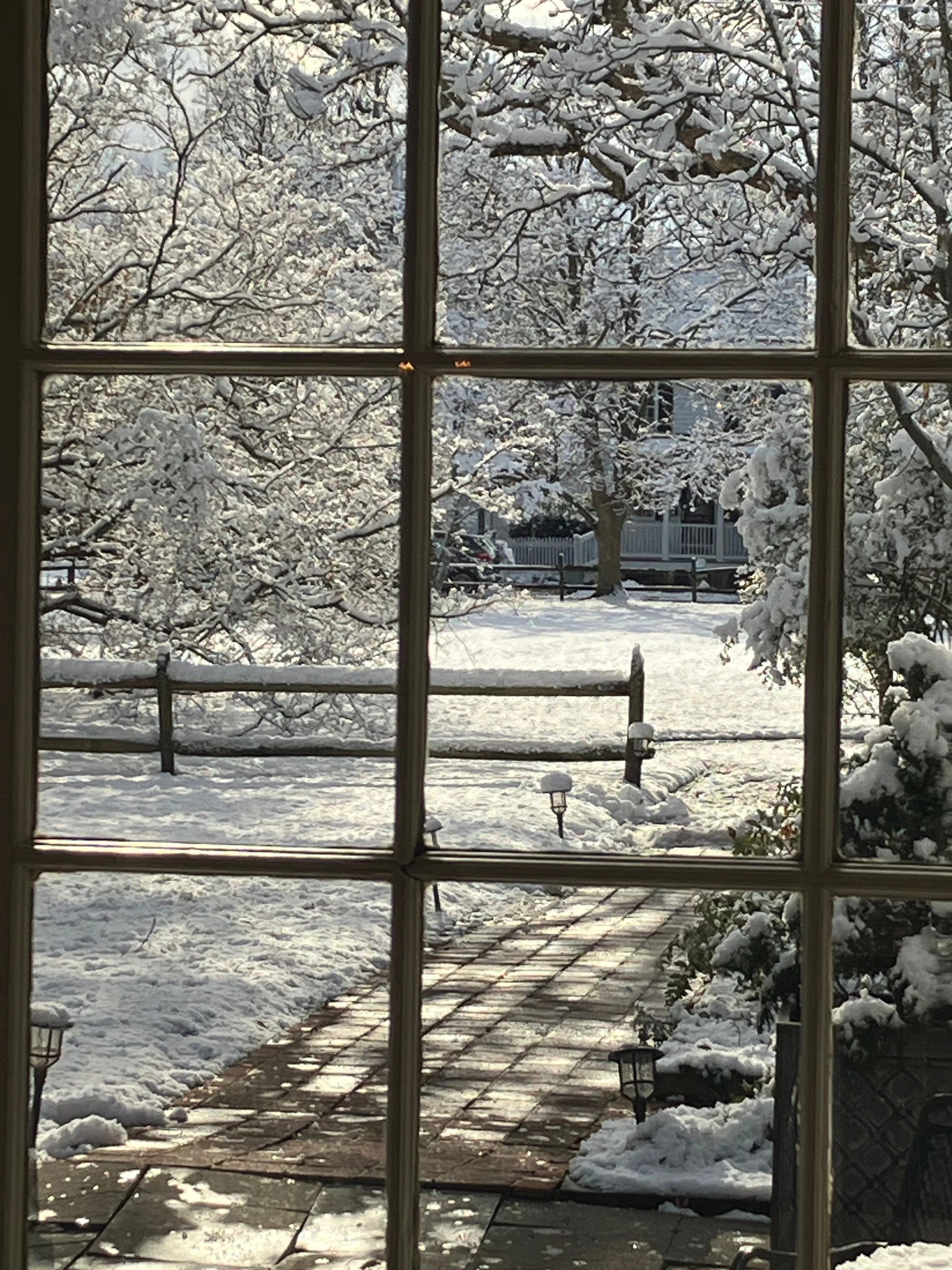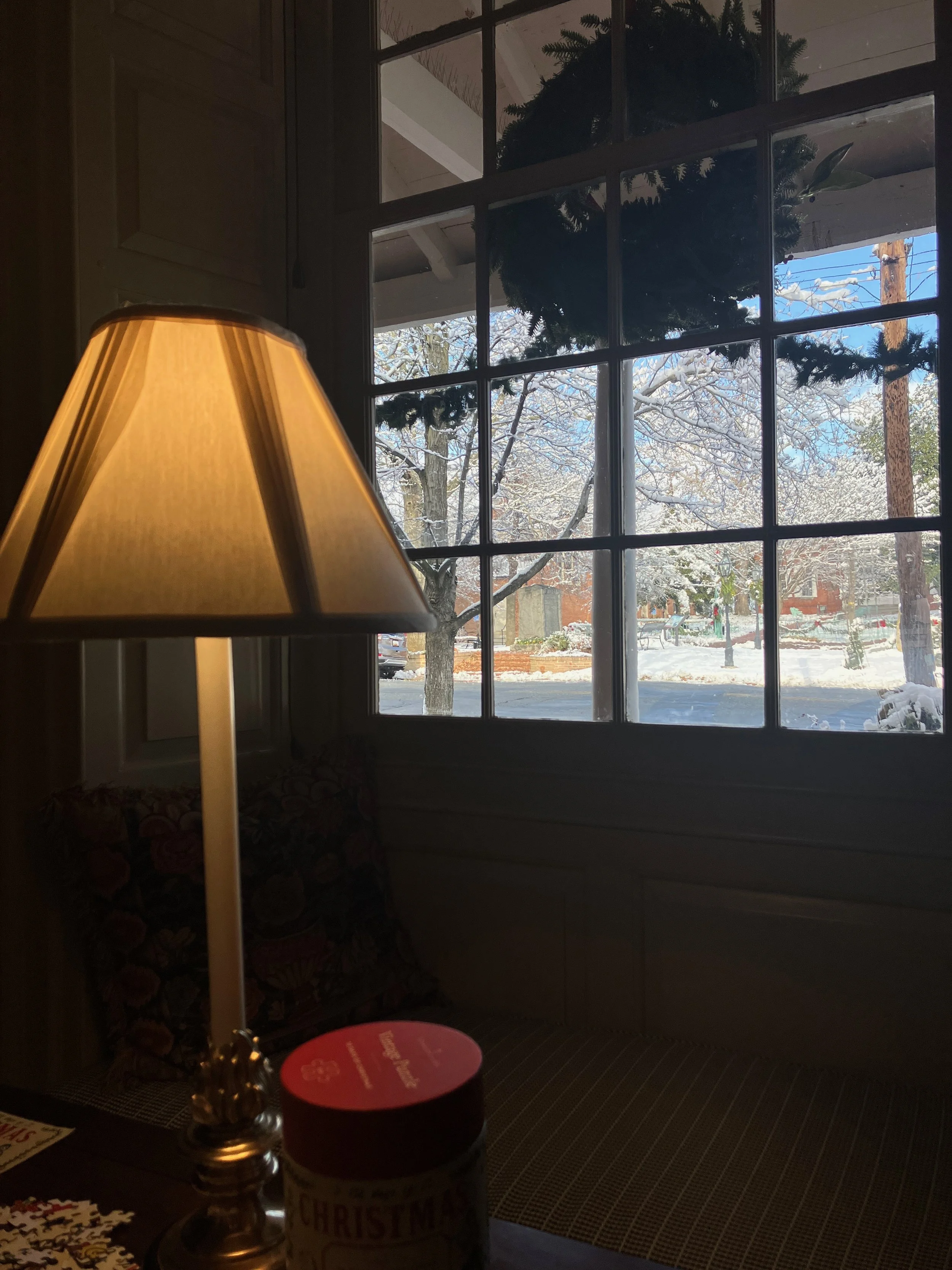 The Farmer’s Market is still going strong even though it’s been a bit cold. The market was crowded with folks this past Saturday buying supplies for the snow we had in the forecast. And it did indeed snow! Guests woke up to a frosted town. I’ve taken a few photos of what it has looked like from inside. In true Eastern Shore fashion it is all melting away today and they are calling for a windy storm to roll through tonight into tomorrow.